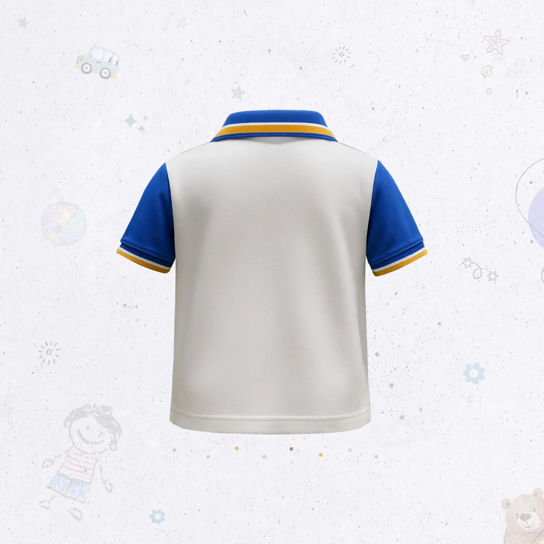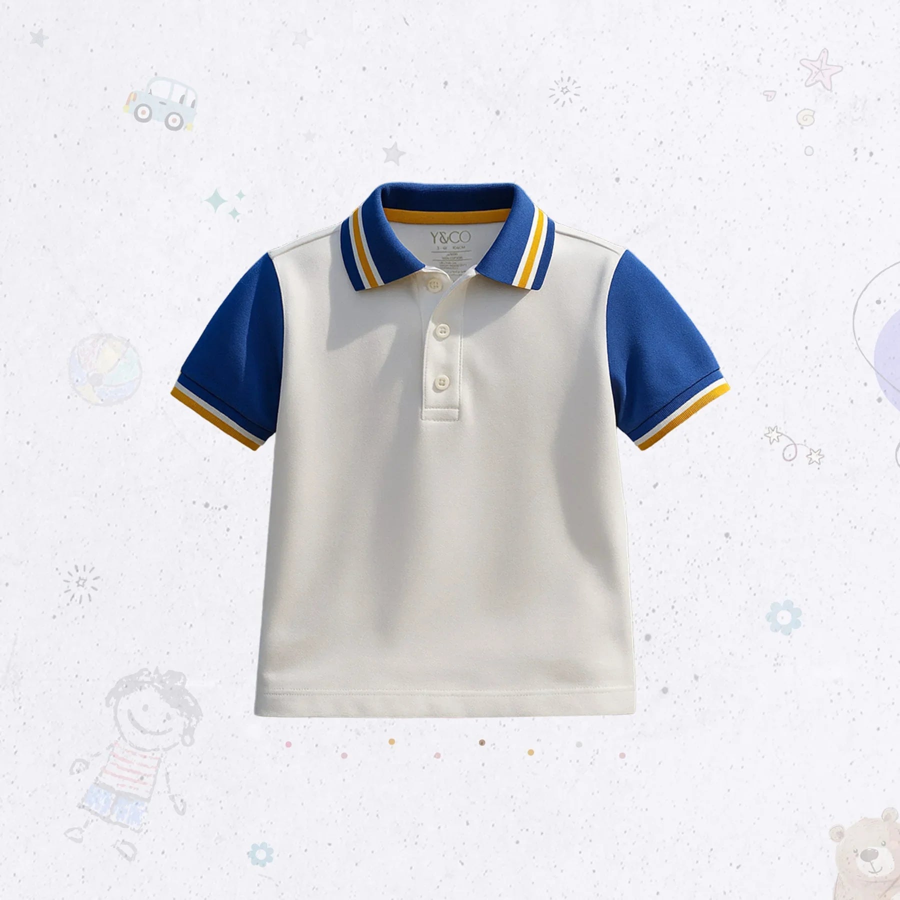 • - قميص بولو متباين للأولاد باللون الأبيض الساطع والأزرق