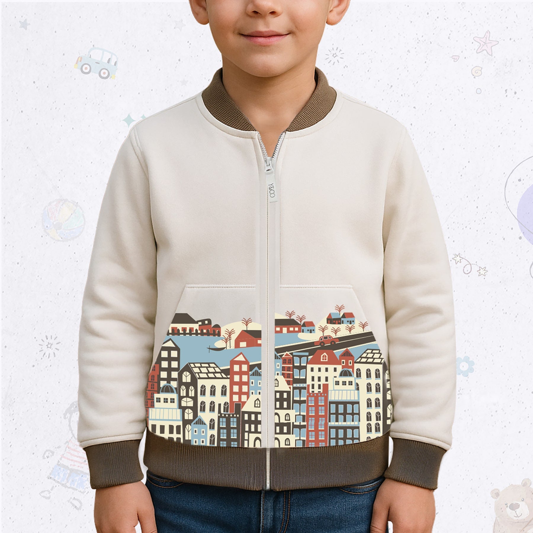 • - سويت شيرت بسحاب للأولاد باللون الرمادي وايتكاب