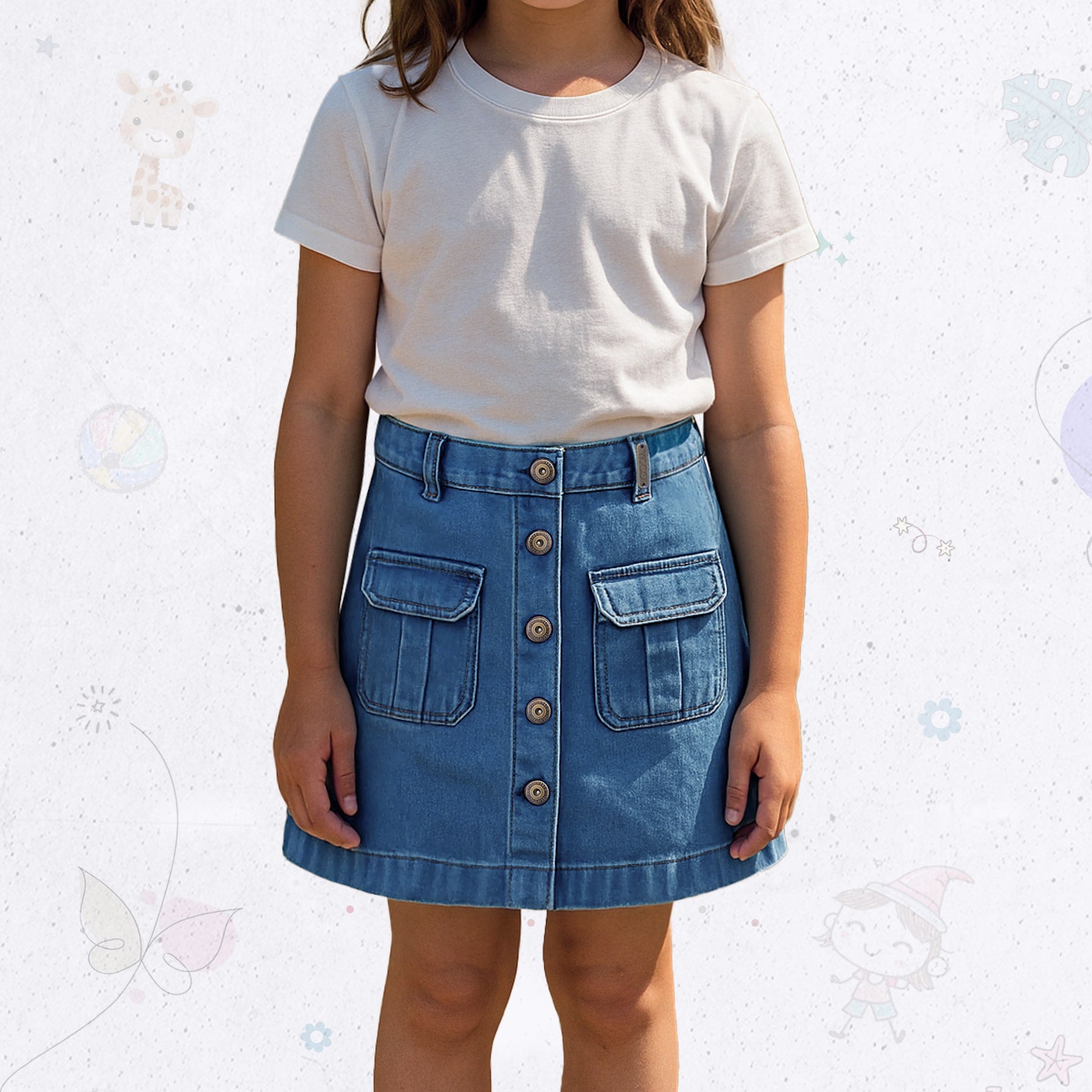 يمكنك ارتداء تنورة الدنيم المريحة هذه بسهولة مع تي شيرت وسترة لإطلالة كاجوال أنيقة مثالية لأي مناسبة. آمنة ومصممة بعناية، هذه التنورة الأنيقة من قماش الدنيم هي الإضافة المثالية لخزانة ملابس أطفالك!