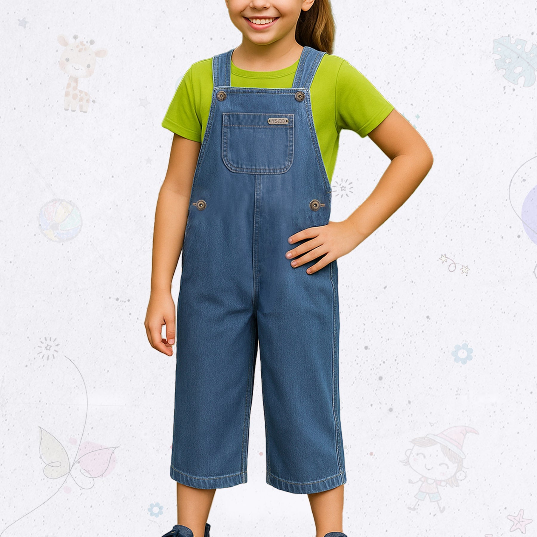 بنطلون جينز للبنات باللون الأزرق الفاتح، قطعة أنيقة رائعة مصنوعة من قماش الدنيم القطني الخالص لملاءمة ناعمة ومريحة. يتميز هذا البنطلون الجينز ذو المقاس العادي بأحزمة كتف قابلة للتعديل لسهولة الارتداء وزر على الجزء العلوي من النير لمزيد من السحر. يضيف الجيب الأمامي المزود بشارة معدنية لطيفة لمسة مرحة، بينما تضمن الأزرار الكبس على الخصر الجانبي ملاءمة محكمة لهذا البنطلون الجينز المريح. جيبان خلفيان رائعان يكملان المظهر.