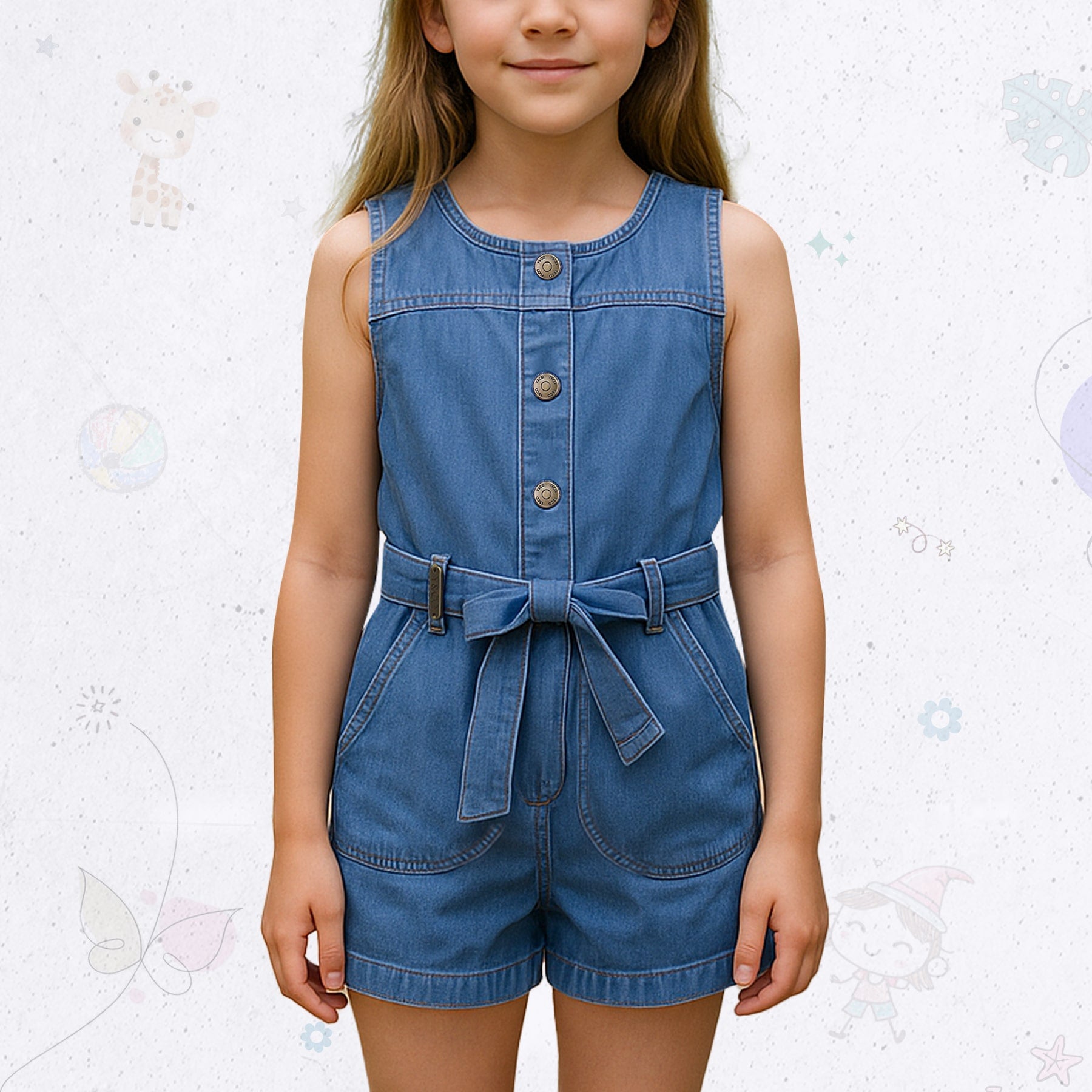 قل مرحباً بدنغري قصير للبنات باللون الأزرق الفاتح - الزي الأكثر روعة لطفلتك! هذا الدنغري ذو المقاس العادي مصنوع من قماش الدنيم القطني الناعم الخالص، مما يجعله مريحًا ومثاليًا للارتداء طوال اليوم. يتميز بأزرار سهلة الكبس في الجزء العلوي للتغيير السريع وحزام من القماش نفسه عند الخصر لملاءمة محكمة. الجيوب الأمامية والخلفية مثالية للكنوز الصغيرة أو الشوكولاتة.