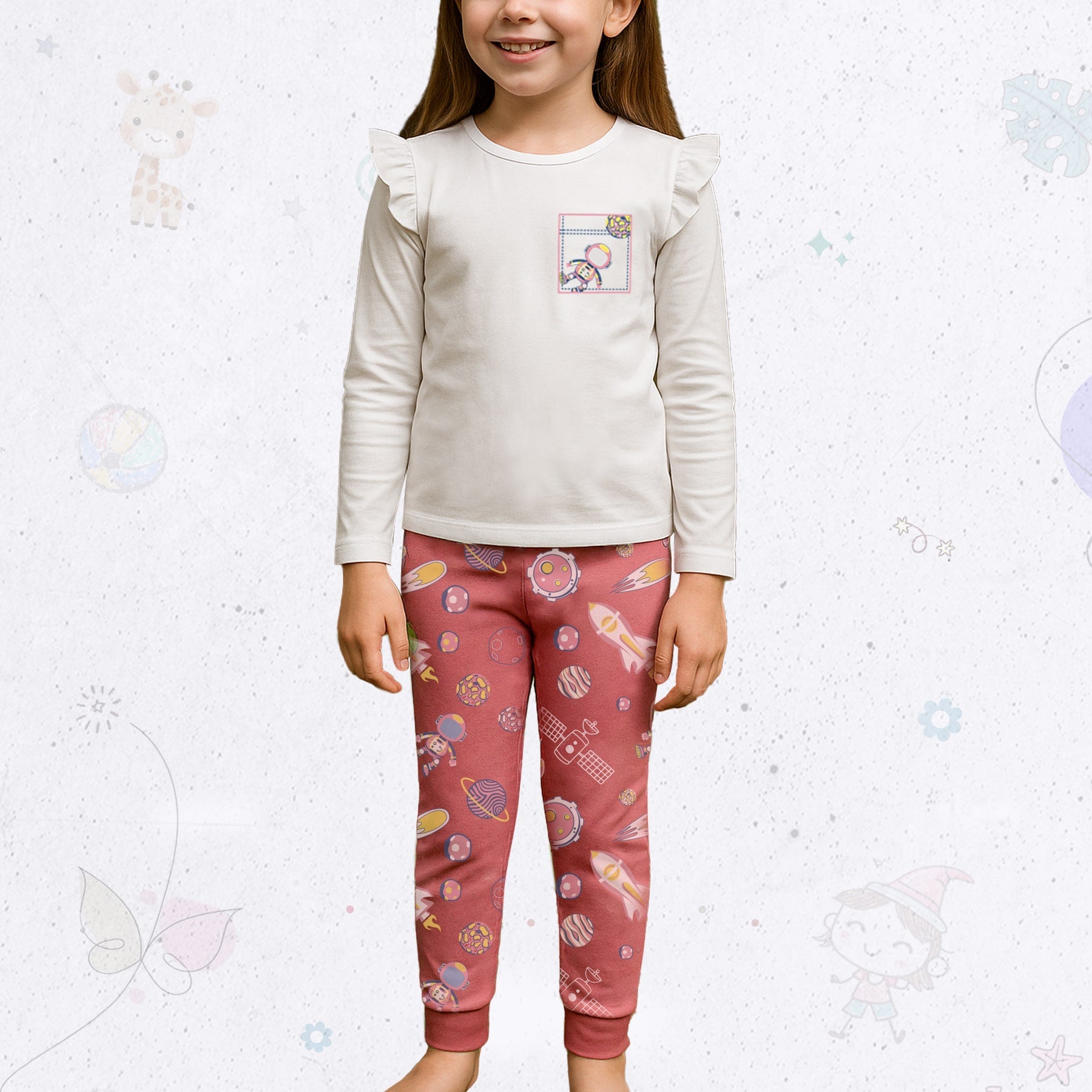 The bottoms? An adorable strawberry pink, covered in a fun space print that’s sure to spark their imagination before bedtime. Made from the purest organic combed cotton, these PJs are super soft, breathable, and perfect for sensitive skin. Plus, the snuggly fabric makes it just right for sleepovers or lazy mornings at home.