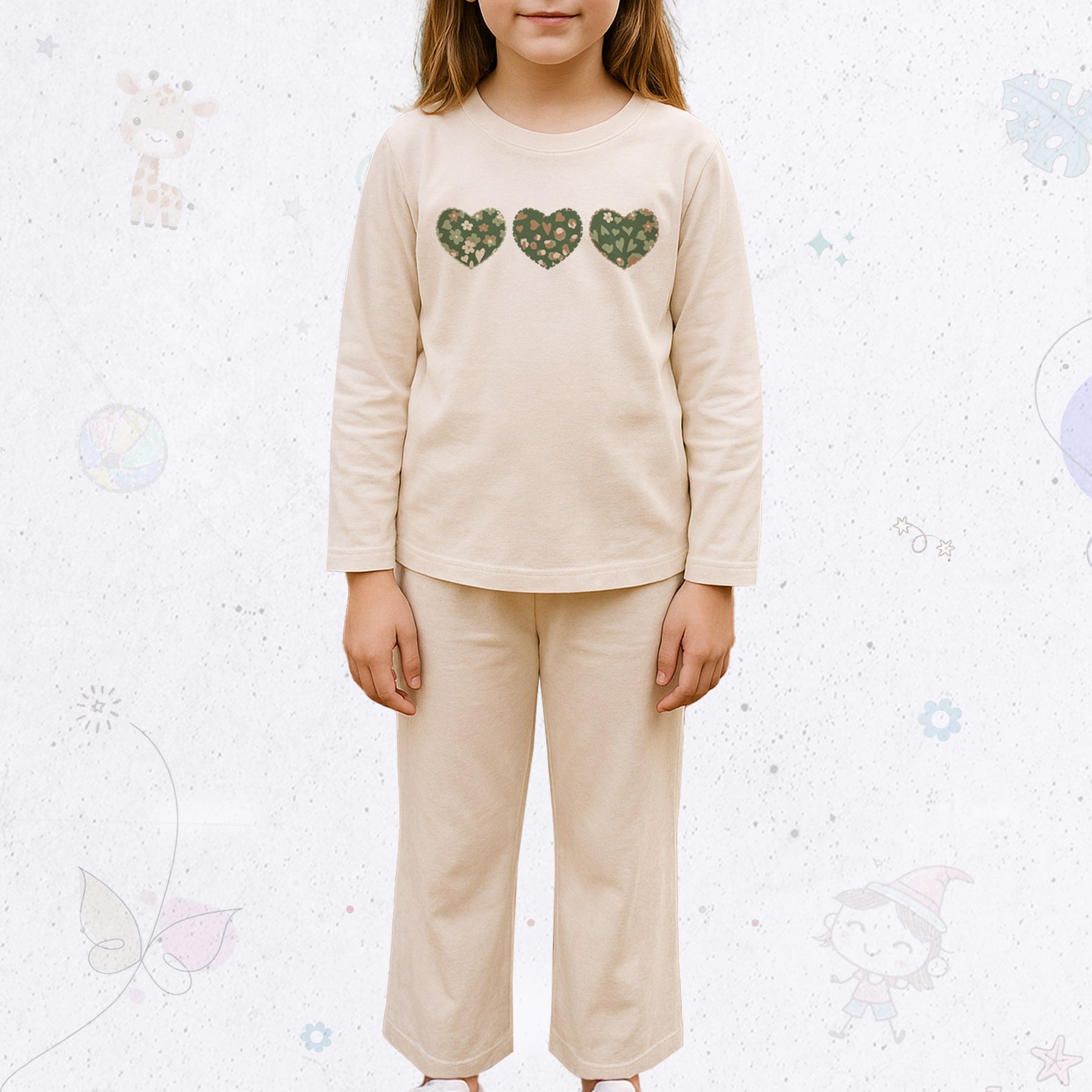 Get your little one ready for sweet dreams in style with a Girl’s PJ Set in Whitecap Gray! This adorable 2-piece pajama set is crafted from the softest cotton fabric, ensuring ultimate comfort for cozy nights and lazy mornings. The long sleeve top features a playful back tail and camo-print hearts on the chest, adding a fun and stylish twist.